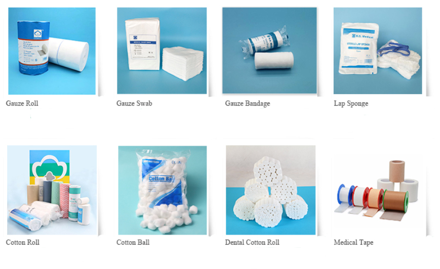 Gauze Roll, Gauze Sponges/ Pads/ Swab, Cotton Roll, Dental Cotton Roll, IVD Rapid Tests, Surgical Gauzes, Wound Dressings.