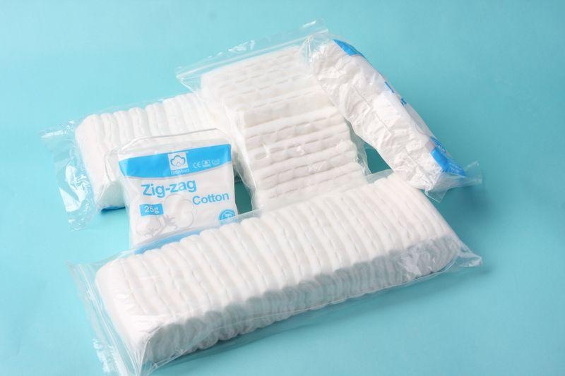 Les cotons absorbants en zigzag sont couramment achetés par Les clients en grande quantité à l'hôpital, à La clinique, à La pharmacie, etc. Vous pouvez être confiant, car nous croyons en La qualité. Nous sommes spécialisés dans Les produits en coton et gaze depuis 1988. Tous nos articles sont certifiés CE, ISO13485.FDA